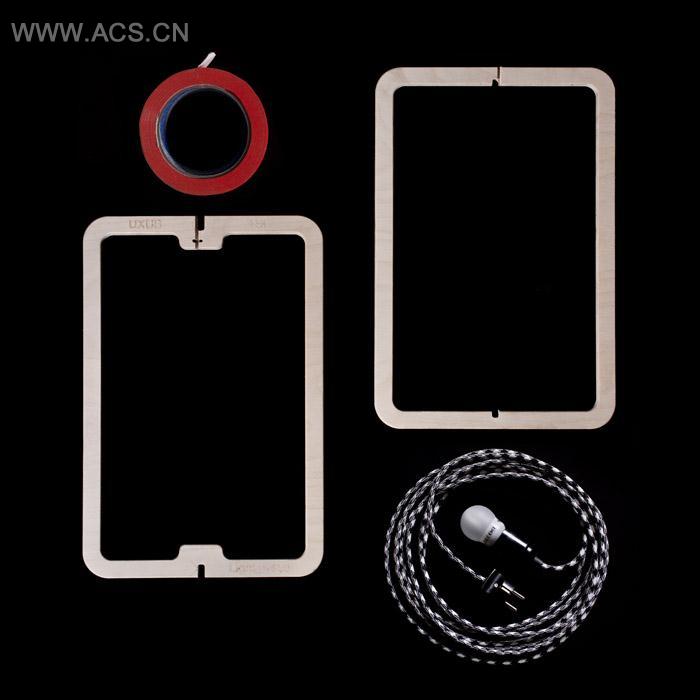 这是一款可以自己DIY并享受创造快乐的灯。这套设计由灯具,两个扁平榉木框,还有一卷彩色胶带组成。其核心理念是用非常简单的元素吸引和鼓励人们参与创造过程,并制作出属于自己的独一无二的灯,同时在制作过程中产生难忘的记忆。这绝不是徒有光鲜外表的产品。