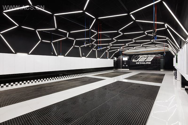 来自设计师 : 本案委案主是一位在商界初崭头角的年轻新贵,希望为亲朋们打造一处不同于传统的相聚之所。在与其交谈的过程中,OFA飞形觉察出 「以车会友」是委案主及其亲朋生活中的共同旋律。综合委案主个人兴趣,大陆豪车市场初步发展的商业需求,OFA飞形创造性地提出了融合三种经营业态——汽车美容(J23 Detailing)、名车展厅(J23 Show Room)、休闲会所(J23 Club Lounge),创造出一座以汽车为主题的新时尚社交会所。
