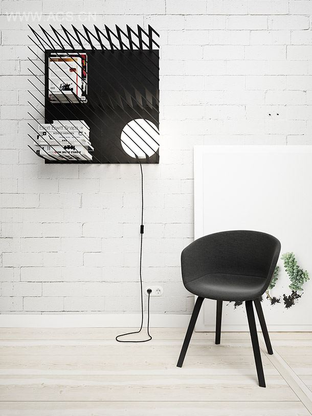 HASH 是一款可以自由组合的书架,书架一面是黑色的实钢,另外三面是具有厚度的黑色片钢。这些片钢能够自承重,也能在不同的组合下显示出炫酷的视觉效果。