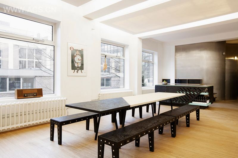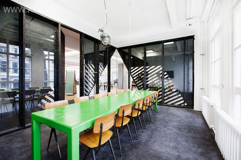考虑到租期不长,业主(超级英雄数码公司)便降低预算缩减到此类精装修工程正常底价的1/4,更加考验设计师的创造力。利用可移动白板和幕布来划分空间,悬挂的盆栽为办公室添加怡人的绿意。在角落处设计了三个必要的会议厅,中间长桌部分为灵活区域,处理其他各项事务。