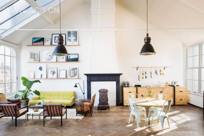 在阿姆斯特丹由一个废旧仓库改建的住宅,宽敞的空间似乎放置再多的配饰也不为过,复古的座椅搭配亮色的沙发,绿色植物带来自然气息,又或是一顶秋千便可以带来玩乐的趣味,卧床简单的置于空间一角,随性又舒适。