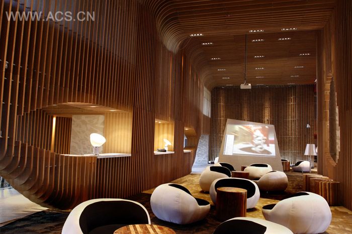 本案的构思,源于空间本身的地域文化关系和作为甲方的营销宣传的一个策略,既东方思想文化的定位,这种双向的文化即地域的关系,决定了这个会所大堂的空间氛围:①是东方哲学文化基础之上的衍生品。②现代的诠释其地域特征,既山海资源的充分体现。③尊重空间的原始诚意性,创造有诚意的空间感受。