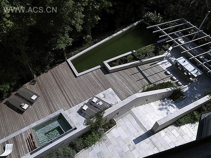 这座静谧的花园位于瑞士苏黎世地区一座陡峭的山坡上。精心设计的挡土墙创造了一系列灵活的平台。这些平台可根据将来的发展需求进行改造。花园的焦点是天然生态泳池。泳池与山坡上的树木融为一体,并创造了一个环境响应式、能自动调节的疗养绿洲。