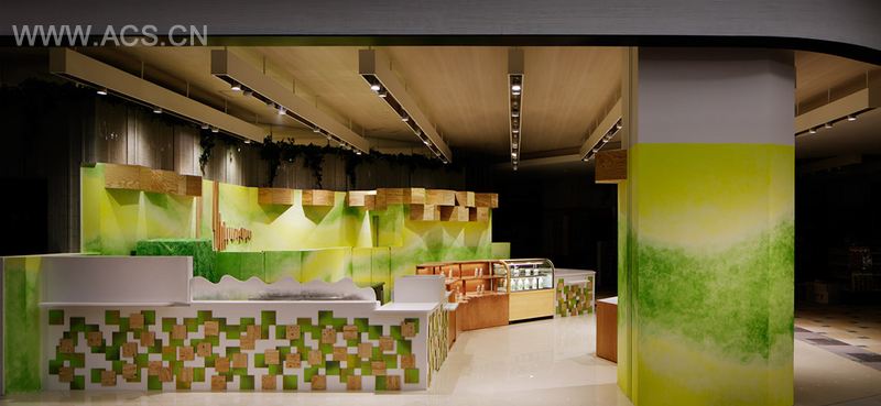 金黄与绿的渐变处理使整个空间显得春意盎然,宛如一阵清新的春风。