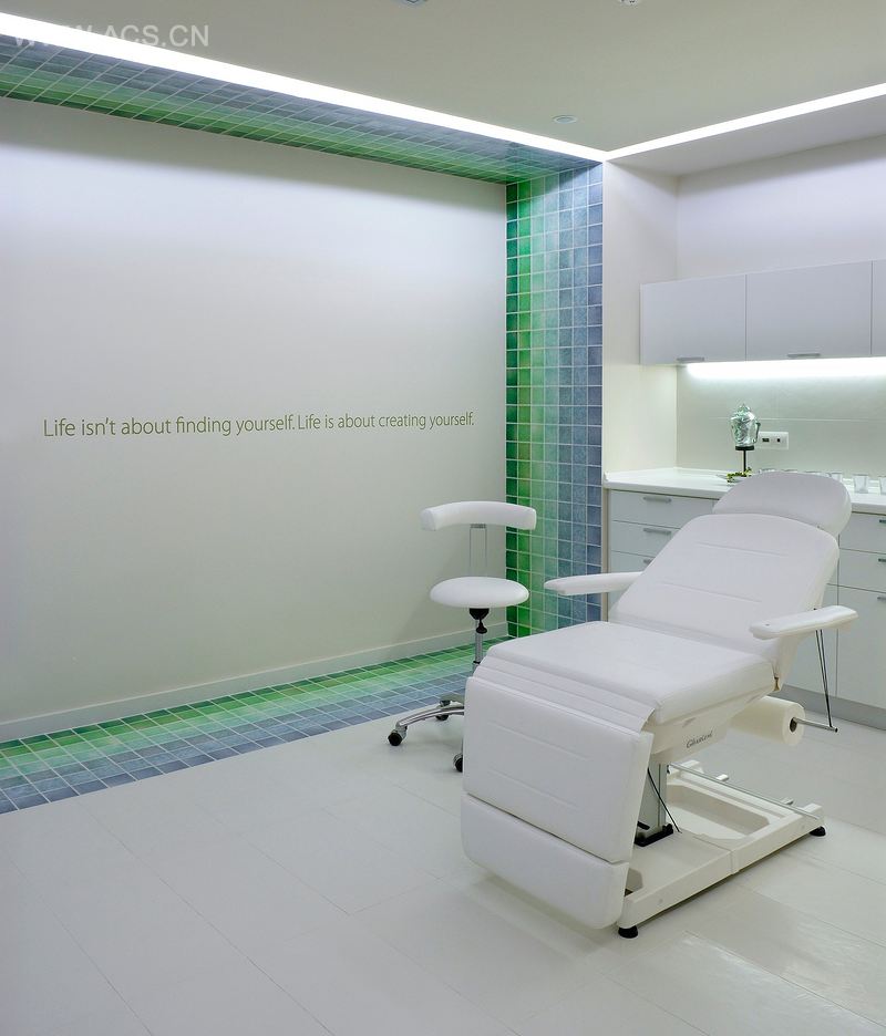 Both here and in space of the smaller clinics in the back is dominated by simple, clean lines, which support the concept of order, organization and hygiene.