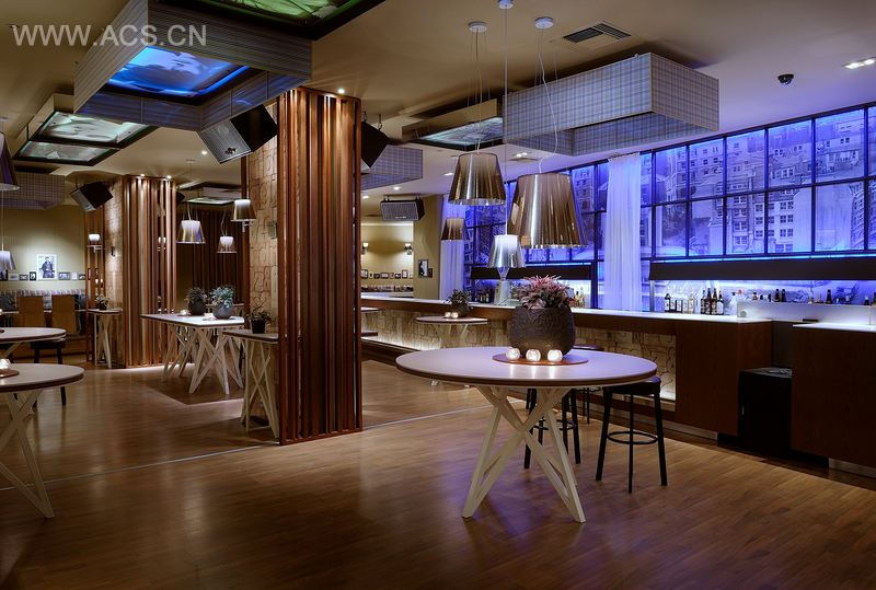 “Theatro” is a lounge bar with an intense taste of tailor-style elegance and delicate postindustrial influences. It reveals a ‘theatrical stage’ consisting of cozy straw couches, sculptural tables, llic lighting fixtures, black and white digital prints, s with plaid fabrics and mirrors on the side. The whole space is organized as a scene where clients both act and observe. All the above designed and placed in harmony in order to provide a comfortable almost homey atmosphere, through warm colors on the walls and furniture and natural materials which will make visitors feel free to relax and enjoy their drink within the hustle and bustle of the city.