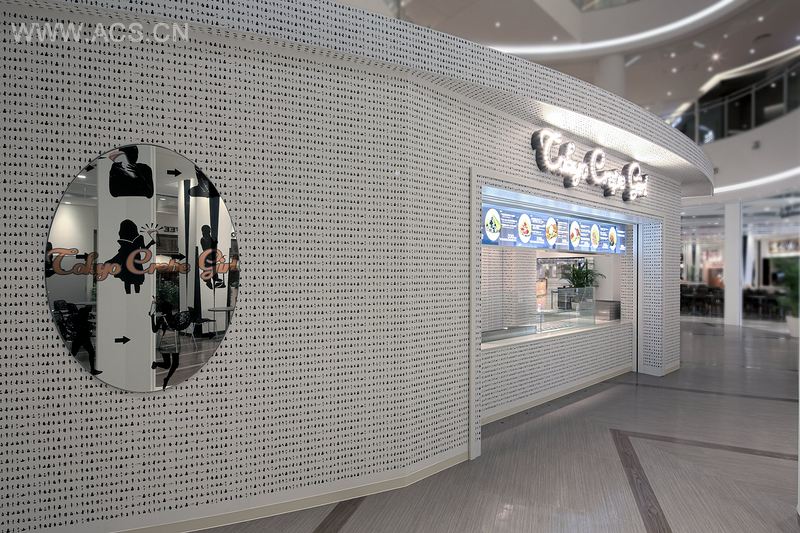 The design of TOKYO CREPE GIRL at DiverCity looks like it is wrapped in polka dots from afar, but as you get closer, you will see a pattern of various continuous scenes of a girl enjoying her crepe.