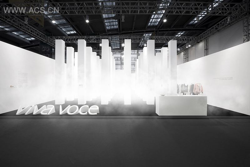 雨伞外壳以白色柱体的特别形式出现,同整个展馆形象相结合,统一置于墙面一侧,形成独特的视觉体验。