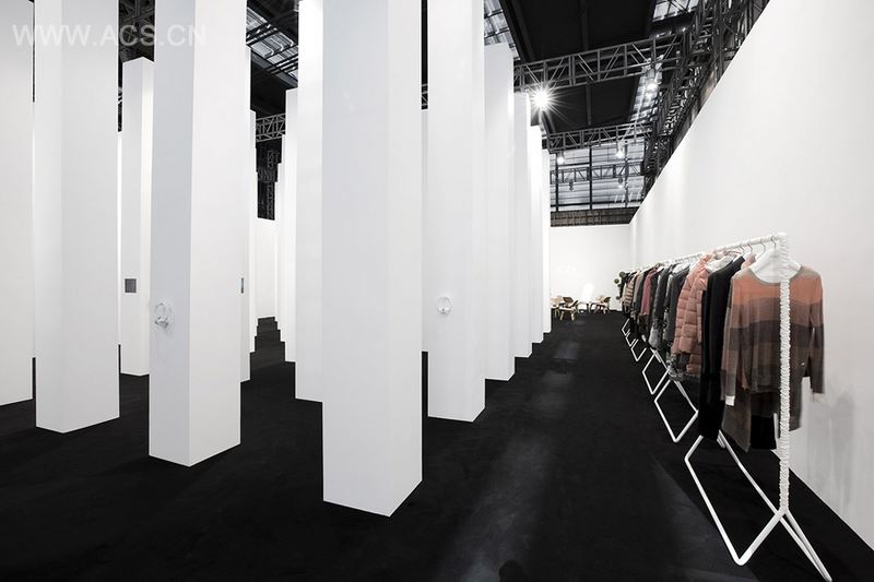纯粹的白色墙体围合出空间,构筑了一个美术馆的场景和氛围,整体的白色干净纯粹,代表着现代和前沿的理念。并以艺术装置的手法结合商业展览,在开放式的空间中置入36根白色方柱,抽象化的未来都市形象,给参观者带来穿行其中的乐趣。汉诺森将多媒体设备融入其中,带来更现代更科技化的交流形式,通过不同的短片,为参观者展示品牌的理想及高度。