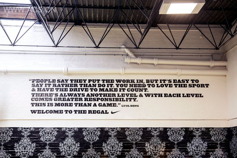 Designed by hotel together with Nike 'The Regal' features one of the most high-spec and eye-catching courts in the UK. The brand-new junckers press dried beech floor is finished in distinctive black oil with HP sport lacquer over the top and highlighted with basketball-only line markings and ‘The Regal’ brand identity in gold. At either end of the court hang the only gold plated hoops and smoked glass backboards in the UK.