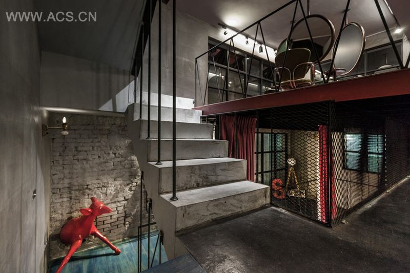 该项目位于台湾高雄,从外观上看是一个普通的房子,HAO design将3层空间转化为一个多功能综合体,一半居住一半作为美发店。裸露的混凝土,铁管,做旧的红,蓝元素混合搭配,让整个空间透露着浓浓的复古情怀。