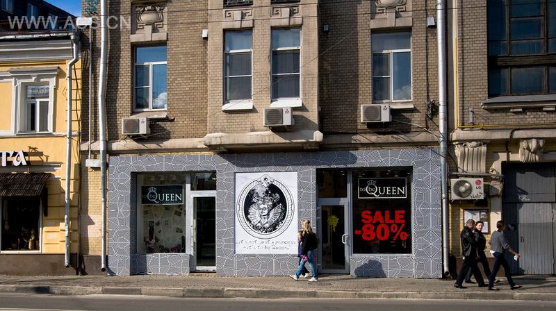The brand was developed from scratch, and the first elements of the image of a logo and corporate identity. From corporate image was developed interior. The basis of color was a combination of black and white. This selection is held back because of the range of brand very colorful and monochromatic gamma advantageous to demonstrate. Curls and classical in form items of equipment featured on the background of a newspaper drawing on the walls, shabby concrete textures and simple painted wooden floor. This combination of the contrast is the main idea of the interior.