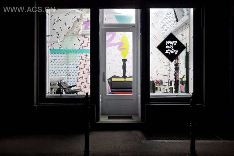 The salon is situated in the city centre, about 5 minutes walk from the historical baroque/neoclassical/art nouveau centre of Ljubljana in a lively district full of bars, restaurants and hipsters. The salon is located on the ground floor of an older rather unimpressive building (built in or around 1920s). It has 5m high ceiling, a wall dividing the space in two parts, although the salon functions as a whole with no particular functional separation of working space. It was already operating as a hair salon before the renovation.