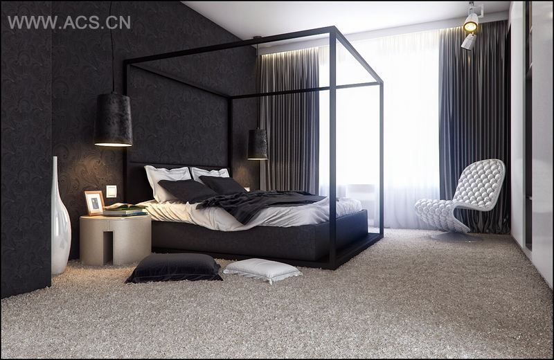 Combining black and white is a great way to achieve elegant and stunning visuals at home. Black creates a focal point, which draws the eye and creates individuality. Black and white color scheme in bedroom, gives fresh and finished look, also the colors are the perfect combination for any style of furniture and decoration. Black Pearl is the modern interior, combines comfort, style and simplicity. The design of the Black Pearl provides incredible aesthetic experience and relaxation after a hard working day. The combination of black and white is not straining sight and conducive to full relaxation. Additional comfort, imported black wallpaper and lights provide a soft and discreet light, and a "bohemian" look. In addition, the floor is designed with a very soft and warm material for an incredible feeling when stepping.