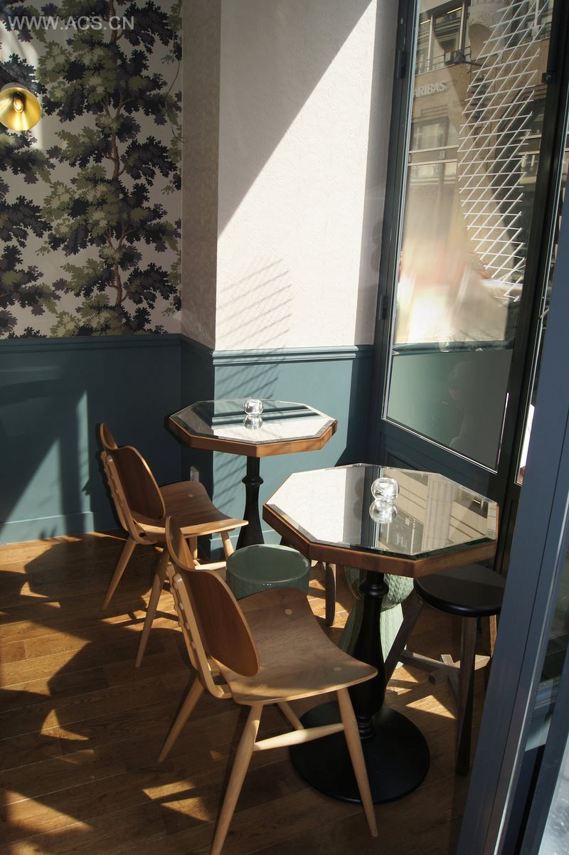 Then, when night falls, the restaurant turns into a friendly wine bar, where the bread is served toasted, together with a selection of homemade plates. I didn’t conceive the spot as a take-away but as a place to share & spend some time. All furniture are custom made or vintage, the colors are bright, the light is gold, green leaves are invading the walls, as the white & green counter made with made with specially designed azulejos made in Portugal.