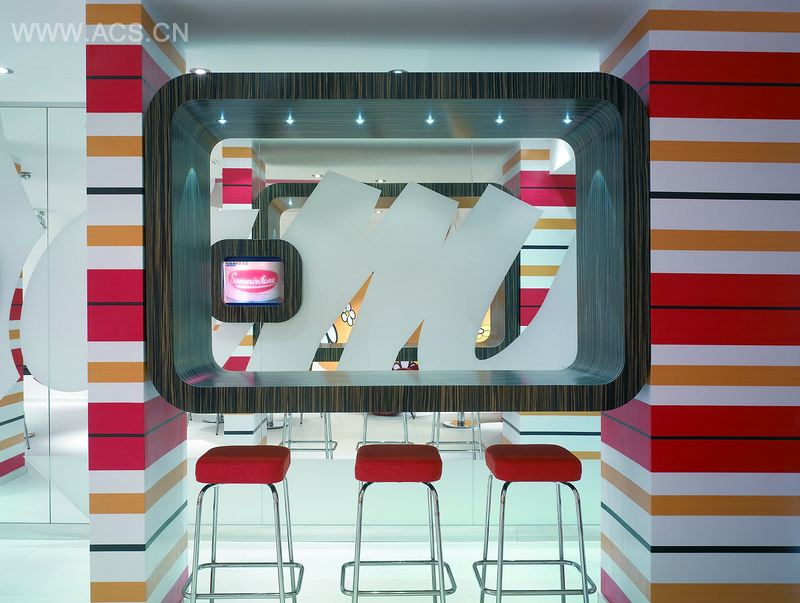 The idea was to make this bulky place harmonious and able to stimulate visual sensorial perception, making the customer unconsciusly living the harmonius world of these precious Sammontana brand chromatisms.