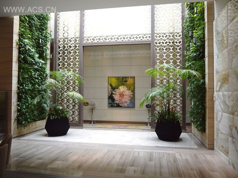 本项目共有10 座室内墙体花园,两两相对,排成两排。每座主墙都设有天窗,增加光线强度。