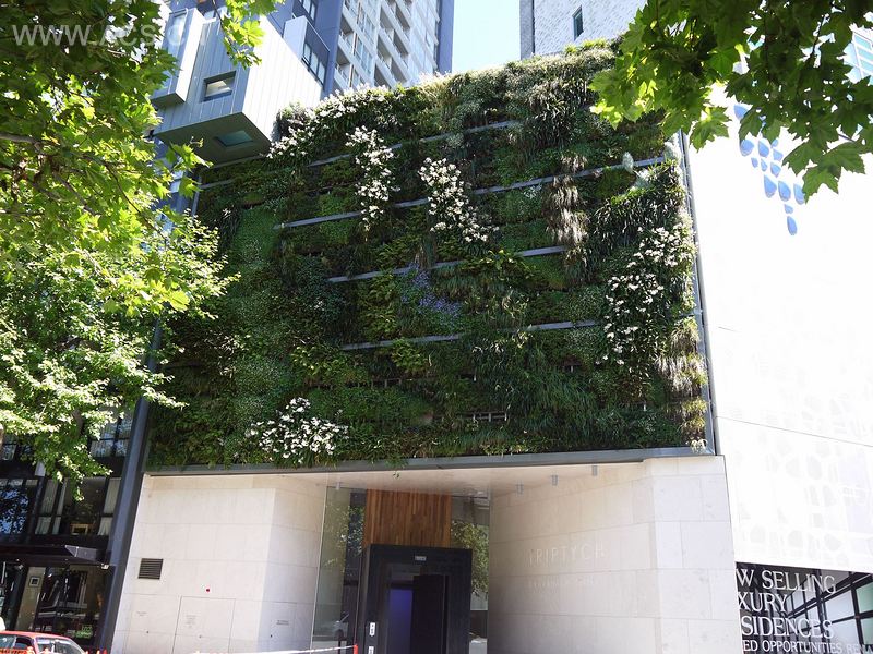本项目位于墨尔本南岸地区,覆盖了建筑第2 层到第6 层的外立面。在东南入口之上的外立面处种植了约20 种地被植物,它们生命力旺盛,能承受各种气候环境。Fytogreen 重视墙体花园的生态可持续性,确保所选择的植物物种能够自然存活。设计师请来一位植物学家,以回旋式主题,对植物进行排列和布置。花园中有许多开花植物,可以预见,待花开之日,花园又将呈现另一番景致。植被之间留有300 毫米的空隙,使得5 层高的停车场内空气得以流通。