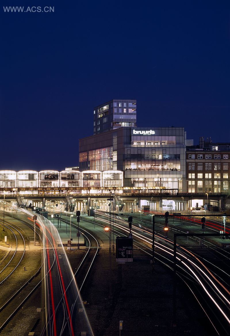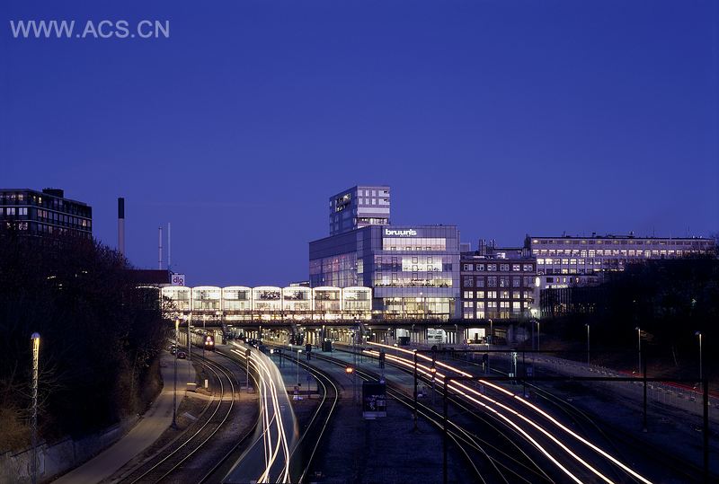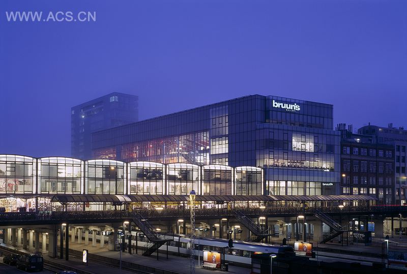 布鲁恩购物中心的建筑样式别致优雅。天然石的坚固基座就像是围绕这座建筑的雕带,其顶部是由玻璃及钢铁做成的。透明的立面让人能深深地望入建筑之中。玻璃屋顶让自然光线流动在宽敞开阔的门厅之中,而柔和的空间线条也轻柔地将参观者们围绕了起来。与购物中心直接相连的是这座城市的新地标 —— KPMG事务所大楼 —— 这座17层的大楼包含了商店、办公室、住宅区和停车场。这个中心位置确保了布鲁恩购物中心与奥尔胡斯的中心及城市基础设施之间形成一种独特的协调关系。