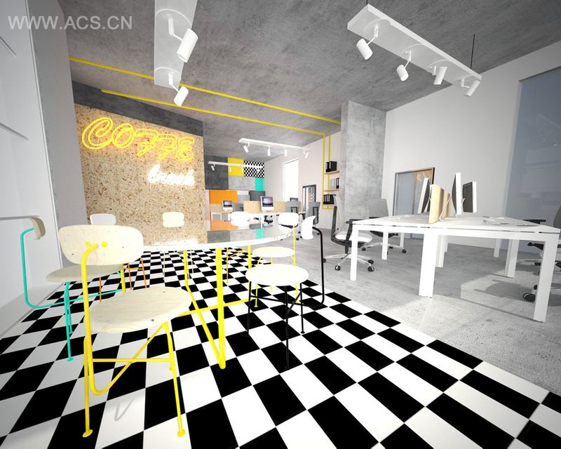 事实证明:明黄可以照亮办公环境,在任何时候。哪怕地板砖打着马赛克,同样不耽误清新简约。