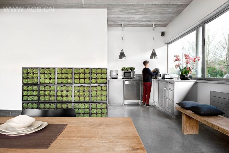 设计师与D&M 合作开发了一种特殊的盆栽土,成为墙体花园的理想用土。模板由回收材料制作而成,分为暗灰色和白色两种。Karoo 的安装程序简单便捷。它的设计和制造工序在比利时完成。