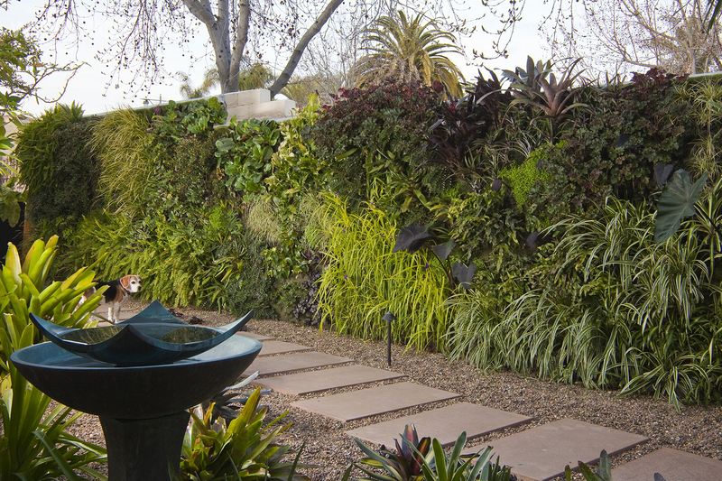 在努力给这座垂直花园项目选址时,最终选择了其在加州圣地亚哥一座面朝东的庭院。从餐厅和厨房的窗口就可以俯瞰到这座庭院。它沿着建筑线而设的1.8 米(6 英尺)高的混凝土墙十分平坦。
