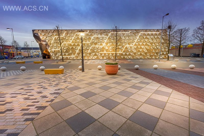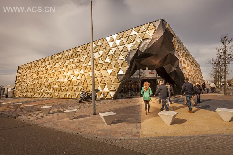 建筑物及周边的设计将安全和防“崩塌”保护也考虑在内。倒角锥状并不仅仅是功能性的——它们的三角外形还强化了外观的设计,并与黄金市场的特点相符合。