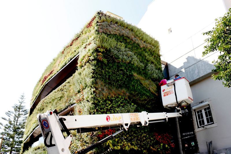 被植物覆盖的外墙面积达到100 平方米,使用了25 种伊比利亚半岛和地中海植物,共计4 500 株,犹如一个墙体花园。维护这样的园艺只需喷洒少量的水。整个建筑弥漫着迷人的香味。在户外泳池区,散发着藏红花的味道;卧室里散发薰衣草的清香;客厅则使人沉浸在迷迭香的魅力中。
