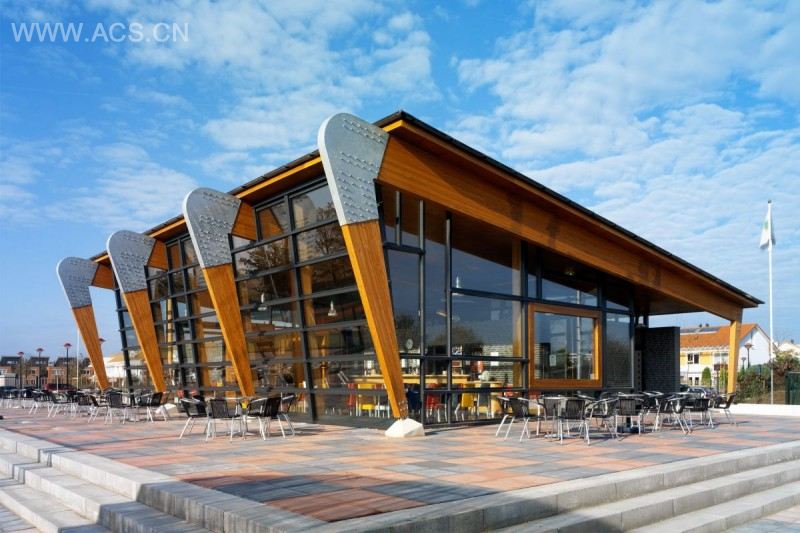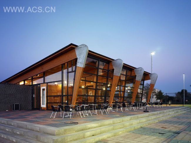 AG Nova Architects designed a clubhouse for tennis courts in Amersfoort, Netherlands.