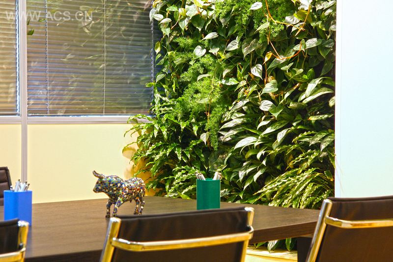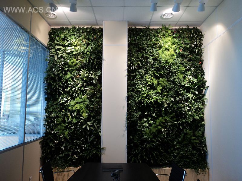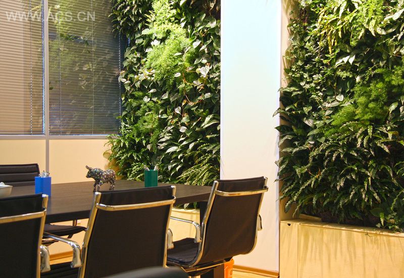 这间用于谈判的房间在视觉上几乎被植物墙霸占。因滕斯维尼克是圣彼得堡的一家正在发展的公司,是设计师2009 年的第一批用户之一。由于因滕斯维尼克办公室的新址需要更多绿色元素,便委托设计师打造了这座墙体花园。