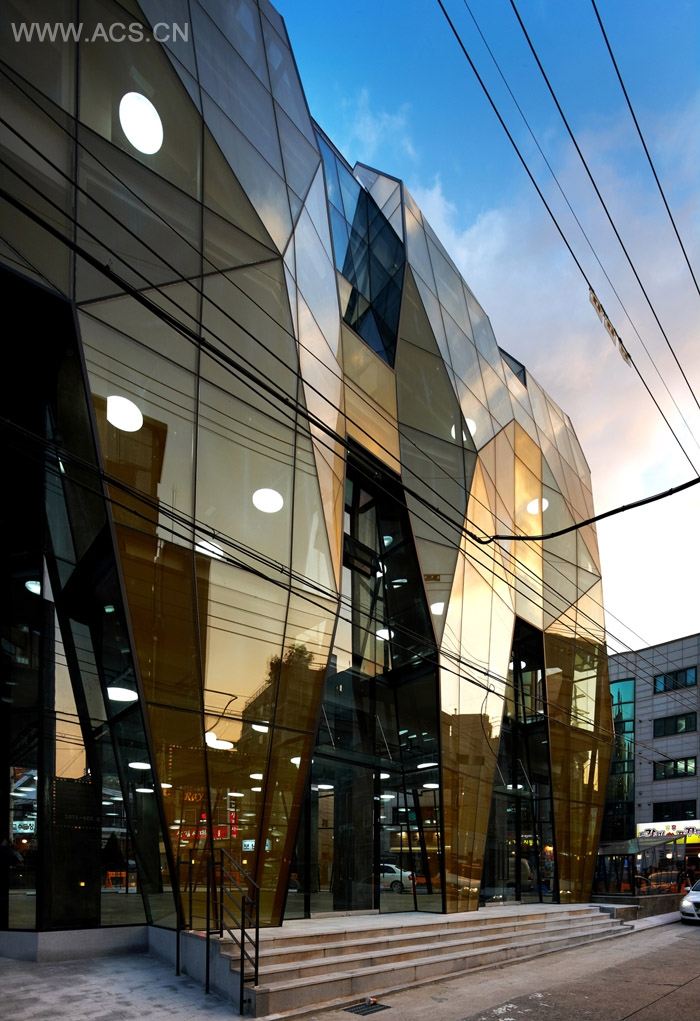 The Yellow Diamond building’s triangular site is located in one of the most dynamic, creative districts in Seoul. Surrounded by several universities, the area has an energy and sense that anything is possible. I felt that uninhibited artistic was appropriate for the site. I also wanted to celebrate and inspire the tenants that may occupy this building in the future.