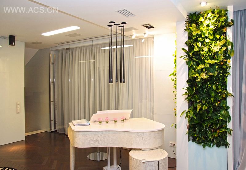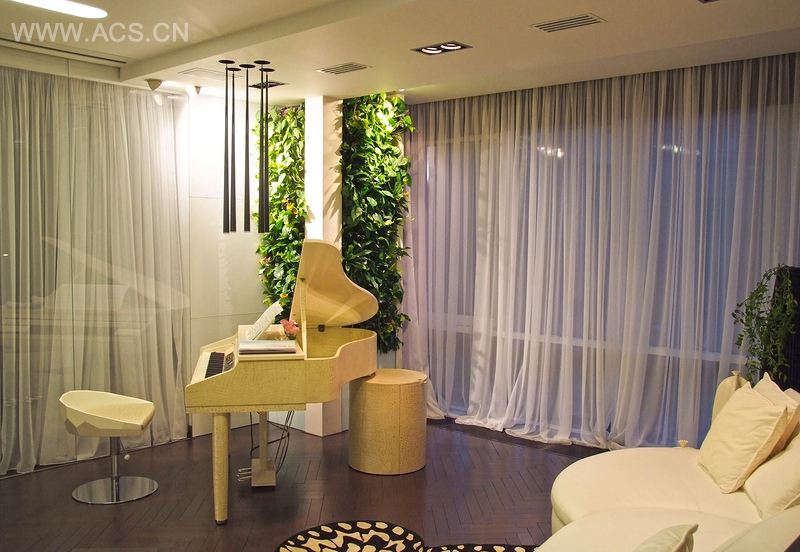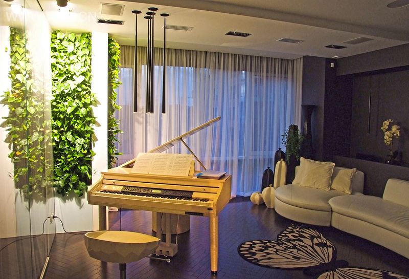 这座郊区公寓里有三座墙体花园,其中两座位于休憩区,使得休憩区看起来更为美观,另外一座位于靠近楼梯处的厅内。花园的风格会随着业主不同季度的审美观而改变。