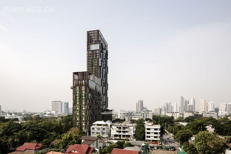 项目远离人口密集而拥堵的曼谷素坤逸路段,坐落于一个楼层较低、绿化良好的居民区内。项目分为两座塔楼,扩大了容积率,每栋高楼旨在满足不同潜在住户的需求。