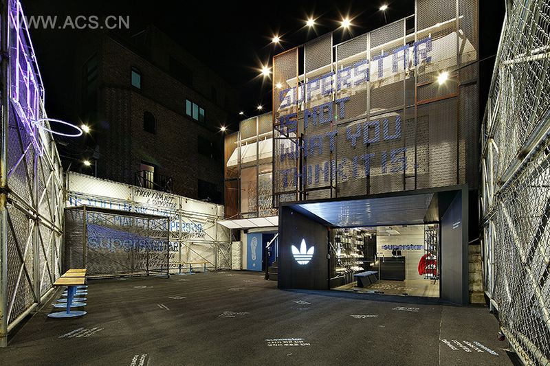 自创建以来40多年之后,adidas original的经典款“superstar”运动鞋重新回归,在韩国首尔设立了一间名为superstar hall of fame 的游击店。这间店由urbantainer负责设计,意在表现出该款运动鞋的本质,从此次活动的标语也可以看出,“superstar并不是你们想象中的那个样子”。整个设计空间突出了该款球鞋,及其在流行文化中的不断演变。