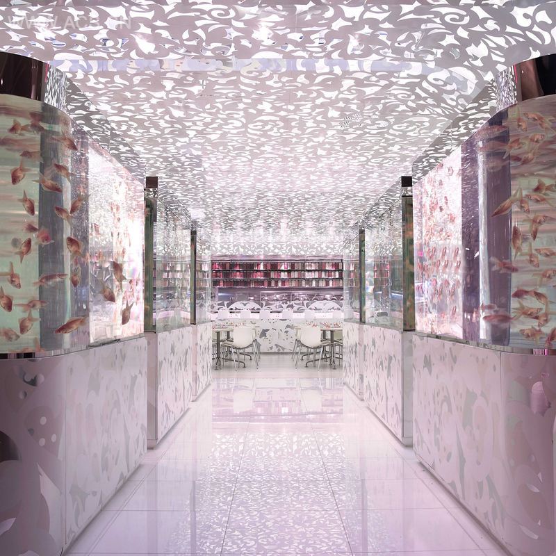 在明亮的光线环境中的整个用餐体验将顾客包围在感性的气氛中。梦幻灯光的反衬突出了森林深处般的仙境氛围,海洋的秘密征服了赌场的喧嚣,带来了视觉上的平静。