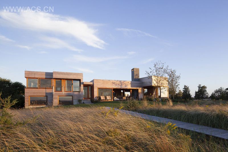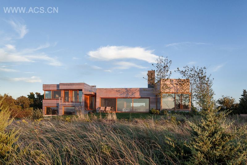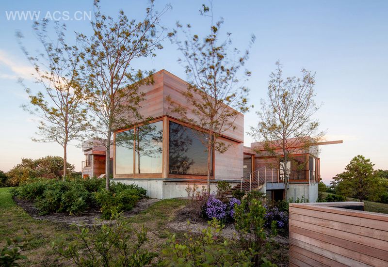 这个独立住宅位于马萨诸塞州埃德加敦附近的奎迪克岛上的一片狭长地带。住宅附近覆盖着葱郁的树木和绿植。它完美而和谐地嵌入环境和周围景观中心,模糊了建筑和风景,内部空间和外部景观的界限。