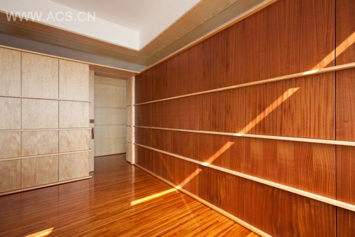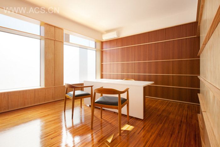 主要的办公室占据了最好的采光面。设计师为了简明功能,采用简约的设计手法使用材料。用木材作为墙面,地板,家具,隔断,门。木材转化为空间。恰当精致的细节让空间感觉不在小。