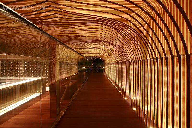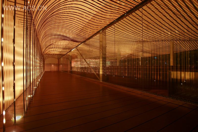 Teeq餐厅位于马来西亚吉隆坡市,在购物中心八楼屋顶停车场。该购物中心为迎接20周年纪念日而被命名为乐天广场。设计师为能参与设计这个总体规划感到幸运,规划包括俱乐部、电影院、餐厅和庭院。设计师选择与风景相称的地点,即使这里的视野不能提供绝美的风景。根据这一点,设计师重点设计了天花板,因为它是唯一没被餐厅包围的部分,且设有保留风景的玻璃装置。然而各种错误导致施工在试验阶段反反复复,设计师企图设计一个瞩目的入口,将顾客迎接到一个环绕天花板的前卫的波纹木板装饰区。设计师花了大约2个月的时间完成试制工作。他最终用金属线将带有LED的条纹木板悬挂起来。