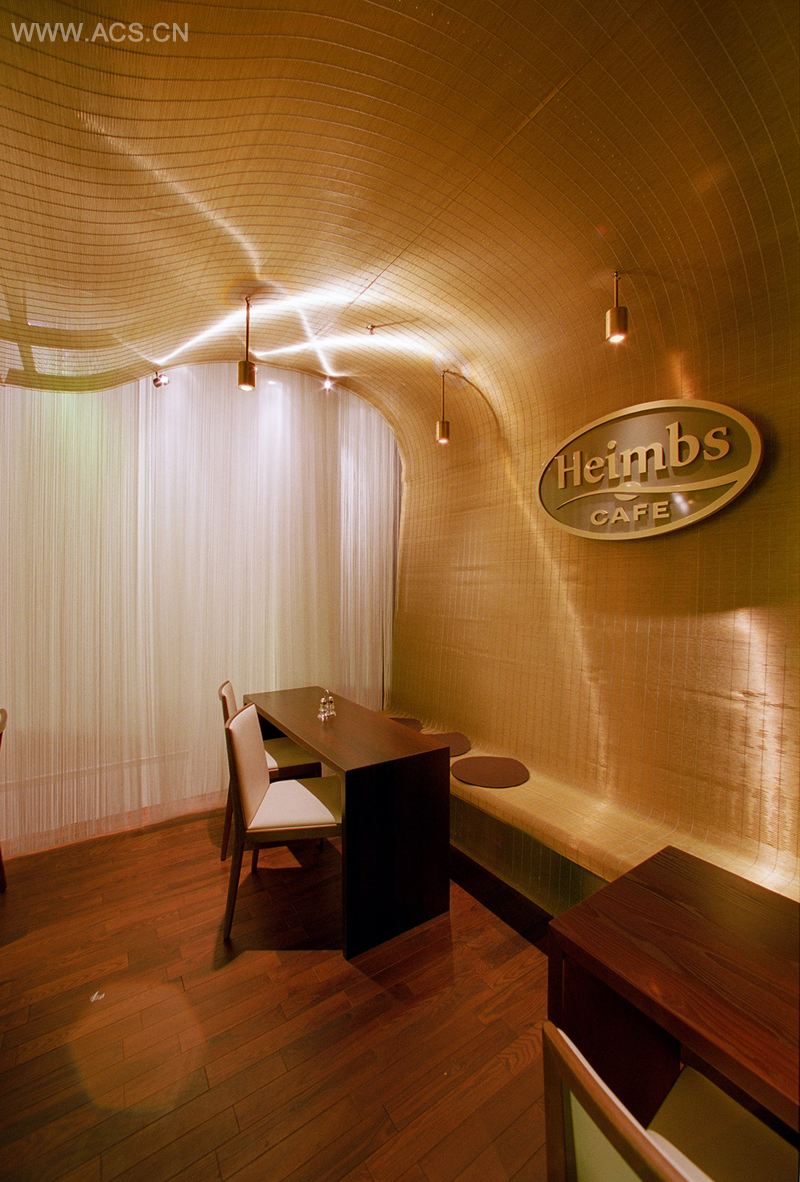 抽象的天空降落至店内最后方,顾客可以坐在“地平线”上,这里黄铜网延伸至最下方,形成一张长椅。