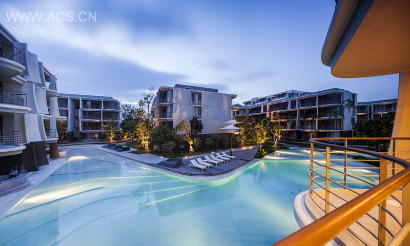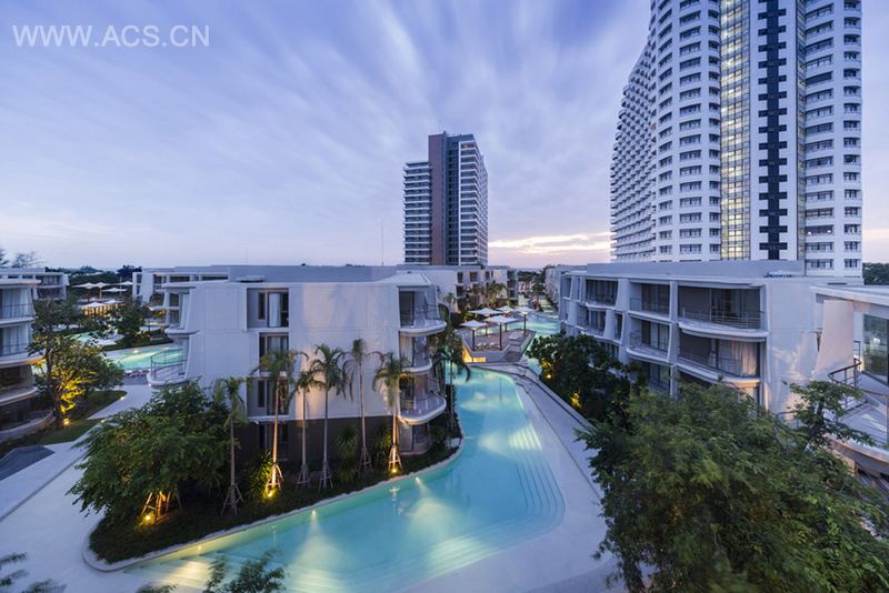 Sanitas Studio在2011年被委托为泰国七岩海滩附近的一个住宅区进行总体规划与景观设计。这个住宅小区中的13栋楼里,只有两栋楼直面海景,因为景观设计的任务就是在这13栋楼宇间打造出如海滩般的景观。