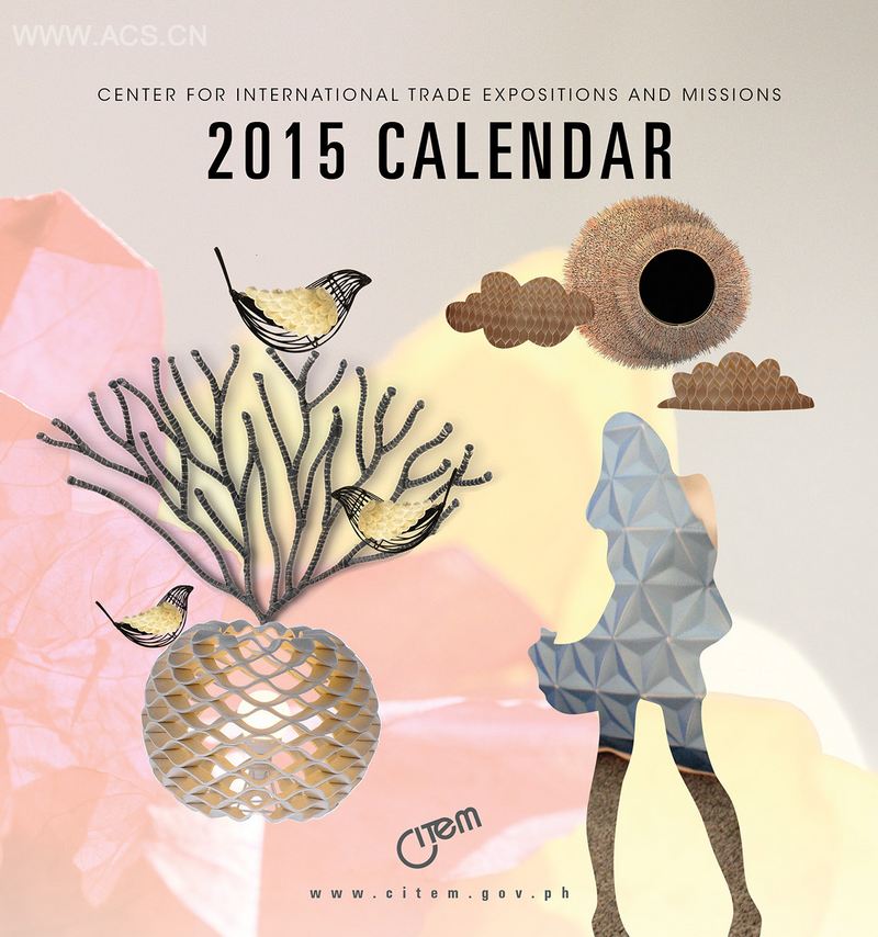 2015年CITEM采用了菲律宾最优秀的各类产品设计(家具、时装、食品、工艺品和节日礼品)来制作台历。其中包括12个独特的艺术品,都来自“艺术菲律宾工匠”那双神奇的手。每个月的第一个字母由菲律宾著名品牌的代表作了现代化的图形渲染。利用现有的设计,以创造新的设计,这件作品的目的是为了把设计者们创造产品故事做一个汇编,因此产生了这充满生气的每一页台历。