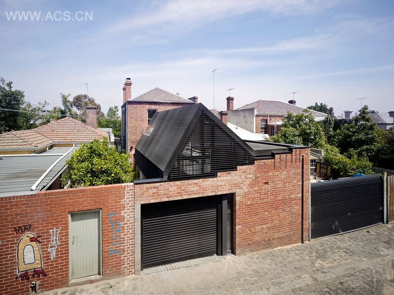 Emerging from behind its high boundary wall, the distorted roof form of Vader House interrupts the symmetrical roof line typical of Fitzroy, and breathes new life into this Victorian Terrace.