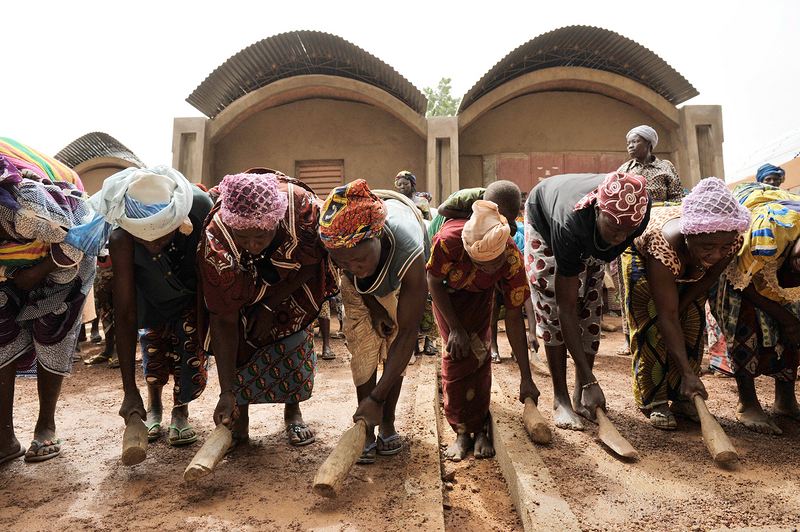 此住宅群是为Gando 村小学教师提供的住房。六栋房子从一个汇合点以扇形排开,标明了学校的南部界限。三种房屋类型,每种都在传统圆形小屋尺寸的模块上,以各种不同的方式进行组合以形成一个更复杂的整体。