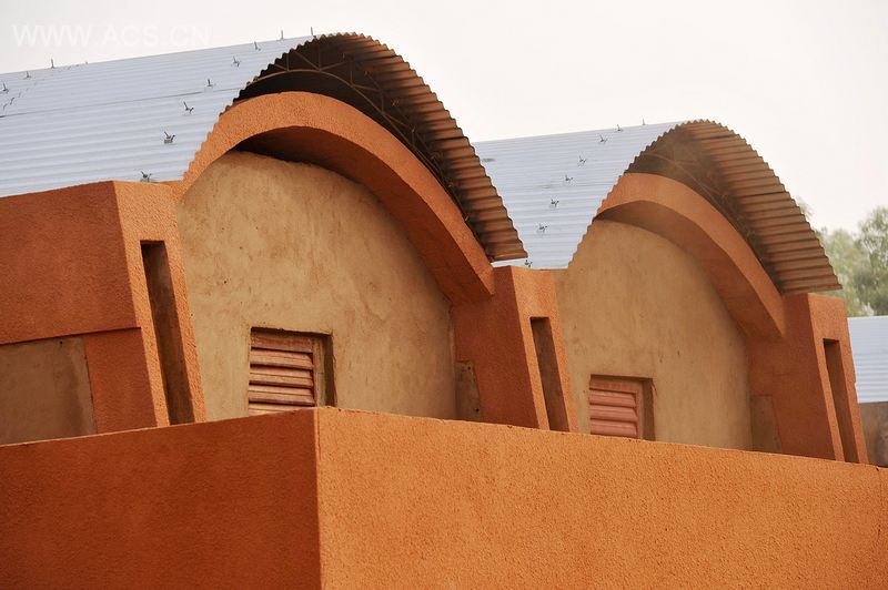 该设计是简单的,材料范围也是最小化的,这样一来村民也可采用和改造。住宅所用的技术在该地区是新型的,拥有气候效益并且充分利用了当地的资源。没有使用木材或钢材,每个住房单元由三面平行的墙壁组成,墙壁由稳固的土砖砌成。40cm 厚的墙建造在花岗岩和混凝土地基上,从而防止湿气渗入。