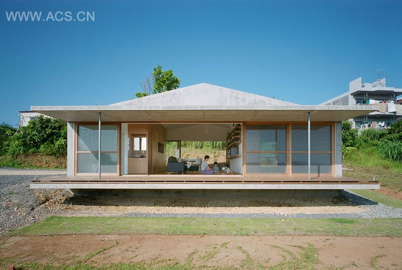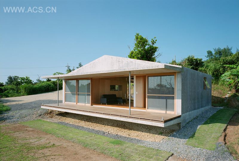 房子的西边向美丽的风景敞开。宽屋檐遮挡了太阳光,这里的太阳光强度是主岛的五倍。宽敞的阳台也可用于清洗及晾干潜水用具。刮台风时,可以在屋檐上安装防风网。可用面积达70 m2。这里不大,但由于风景美丽,因此决不会感觉狭小。融入周边地区中,这是一个小房子里的简单生活。这座房子已经成为西表岛的一部分。
