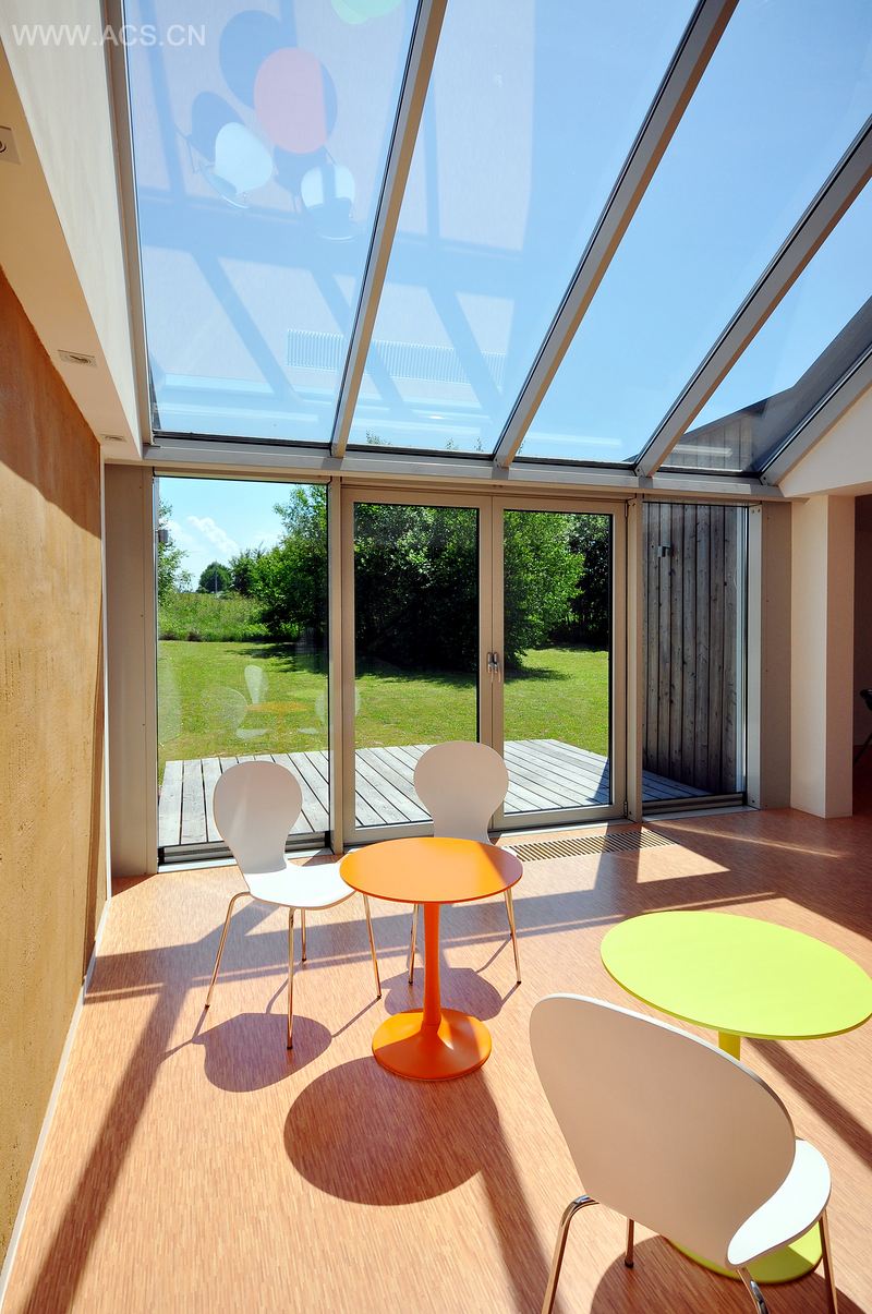 房子被设计成充分吸收太阳能的形式,大约4 / 5 的房子表面是面向太阳的。首层生活空间外面覆盖着未经处理的落叶松木板,太阳能通过玻璃般光滑的露台获得并存储在壤土墙里。太阳能集热器安装在屋顶,未来计划安装光伏系统。“黑匣子” 一个三层结构,覆盖着炭黑色纤维水泥板的深色外观由太阳加热,可减少热量流失到环境中。热回收系统的通风装置增强了主导和诱导式太阳能观念和热绝缘材料的标准。