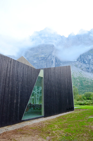 It’s a new cursor at the foot of the Troll Wall. The architecture of the new visitors centre next to E139 is an outcome of the site’s close relation to the impressive mountain wall, one of Norway’s many nature attractions. The building has a simple, though flexible plan, with a characteristic roof that has its character from the majestic surrounding landscape. These simple ways of design gives the building its character and identity that makes the service centre an eye-catcher and an architectural attraction in the region.