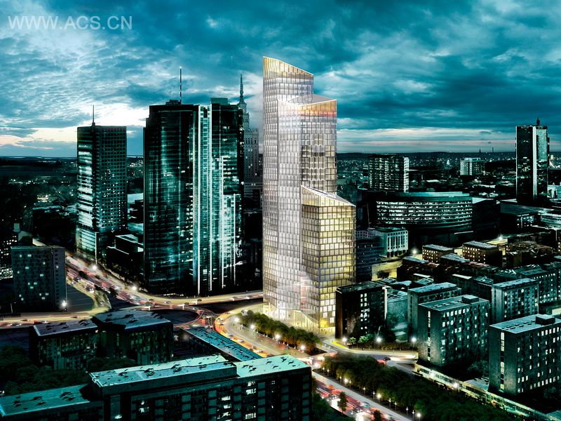 The of the competition was to design an office tower that will be a new landmark in the Warsaw skyline while at the same time capturing the full potential of the outstanding historic location.