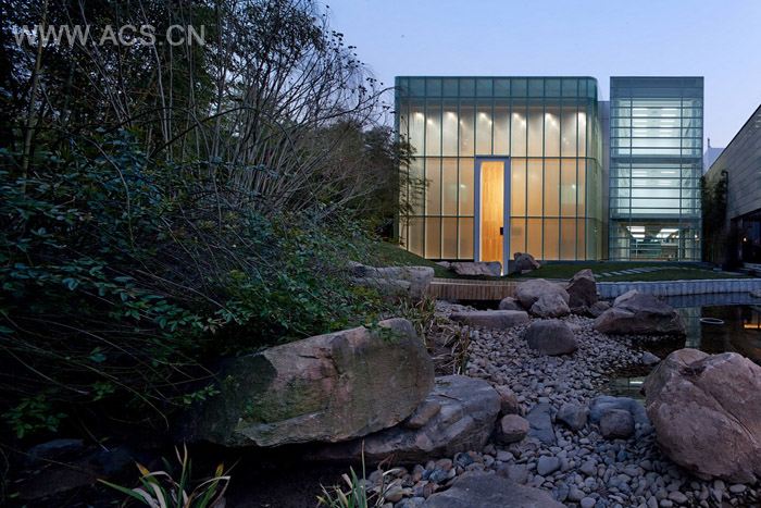 2006年,矶崎新设计的浦东九间堂1号楼会所、2号楼以及3号院落成。2011年,3栋楼的业主不约而同前后找到建筑师俞挺先生对它们进行改建。业主希望将闲置的2号楼从400平米扩建成900平米的书院,用作传授中国传统经学。建筑师先用竹幕墙来紧紧包裹破败的旧建筑。再套上更大的半透明圆滑的宣纸玻璃盒子削弱旧建筑的体积感。两者之间就是旧建筑所缺少的公共空间-边庭。大门是个高达6米的戏剧性的洞,让边庭更像是模糊室内外空间的院子。新增的教学楼是一个纯净的玻璃盒子。通过和旧建筑对称中的对比,比如圆角和直角;半透明和透明;垂直分割和水平划分;以立面上的精致的平衡来暗示了内部功能的差异性。无极书院完整意义上的立面是空间而不是界限,建筑师在这个空间上层层叠叠地使用资本主义建筑语汇,却创造了中式建筑的意境。