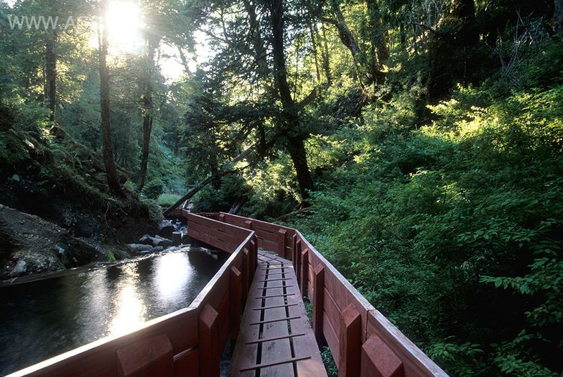在智利南部的比亚里卡国家公园,圣地亚哥以南450英里的原始森林中,有一条天然温泉小溪,流过山涧。人们在这条烟雾缭绕,仙气十足的美丽山谷中用石材造了17个大小不一的温泉池,一条蜿蜒的木桥串联起所有的池塘,让人们可以闲庭信步的欣赏山谷野趣风景,同时选择自己想要泡的开敞温泉池或者比较隐蔽的温泉池。